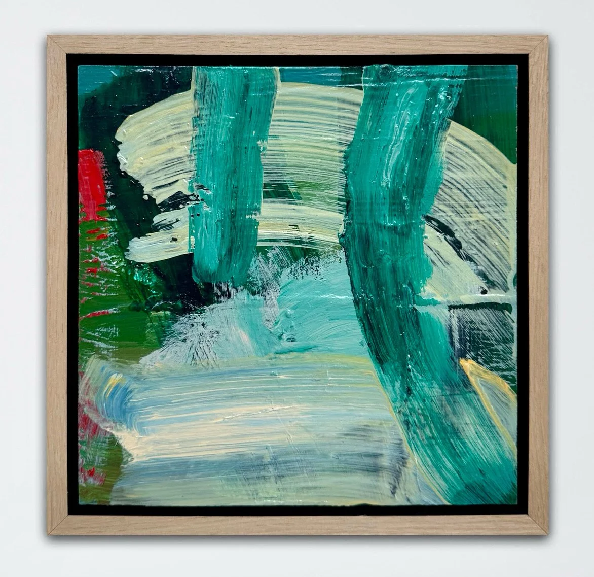 Untitled. (Ko Pha Ngan). Acrylic, medium on reclaimed MDF panel, framed. 20cm x 20cm. 2022-2025.