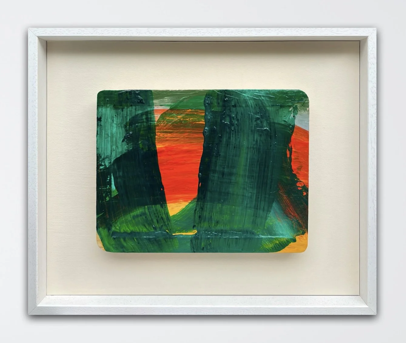 Untitled. (Ko Pha Ngan). Acrylic, medium on reclaimed MDF panel, framed. 24cm x 30cm. 2023-2025.
